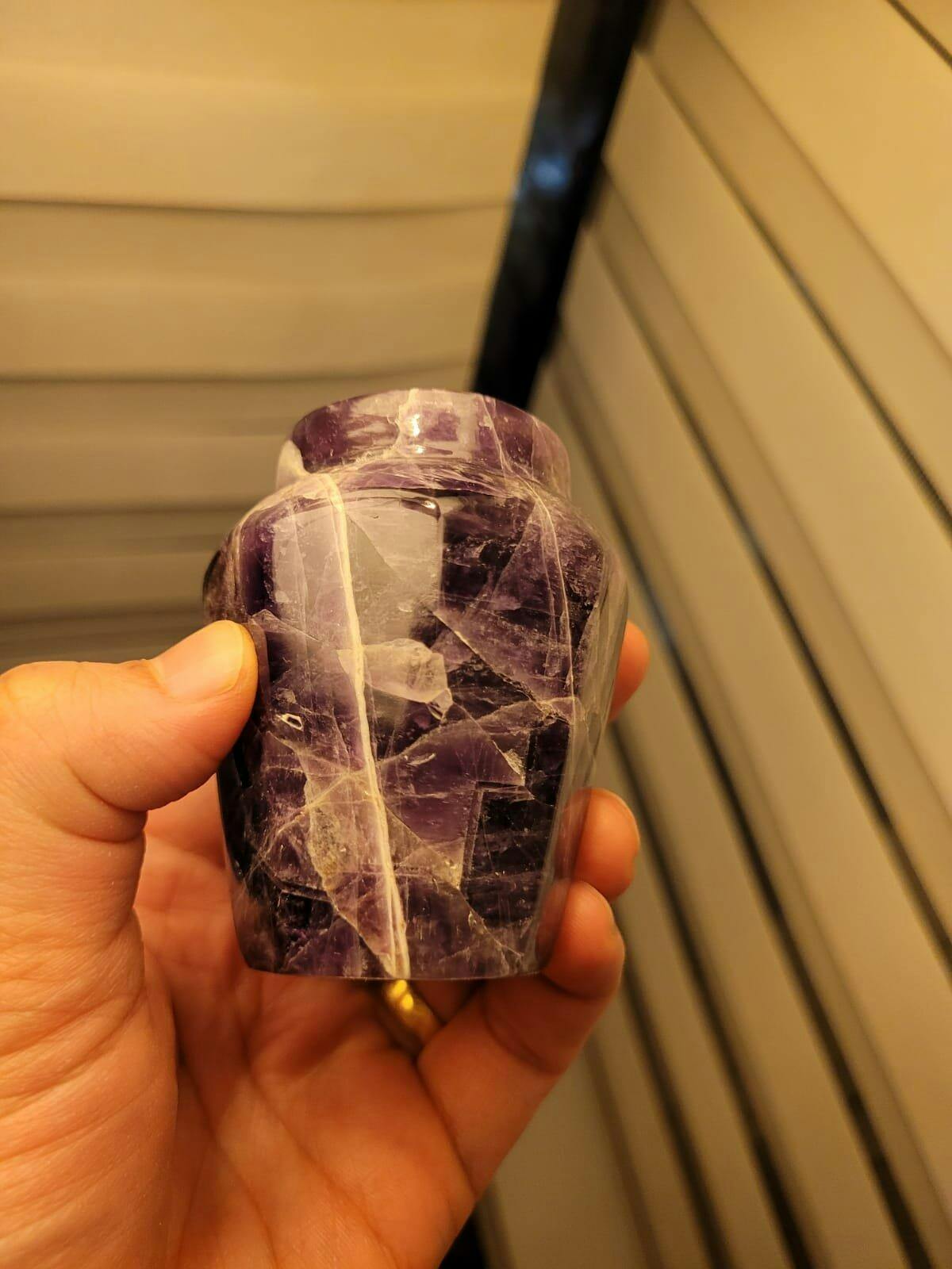 Hand-hollowed from solid violet quartz by Jaipur artisans, each vessel withstands days of risky carving - where a single mistake could fracture the unpredictable stone.
