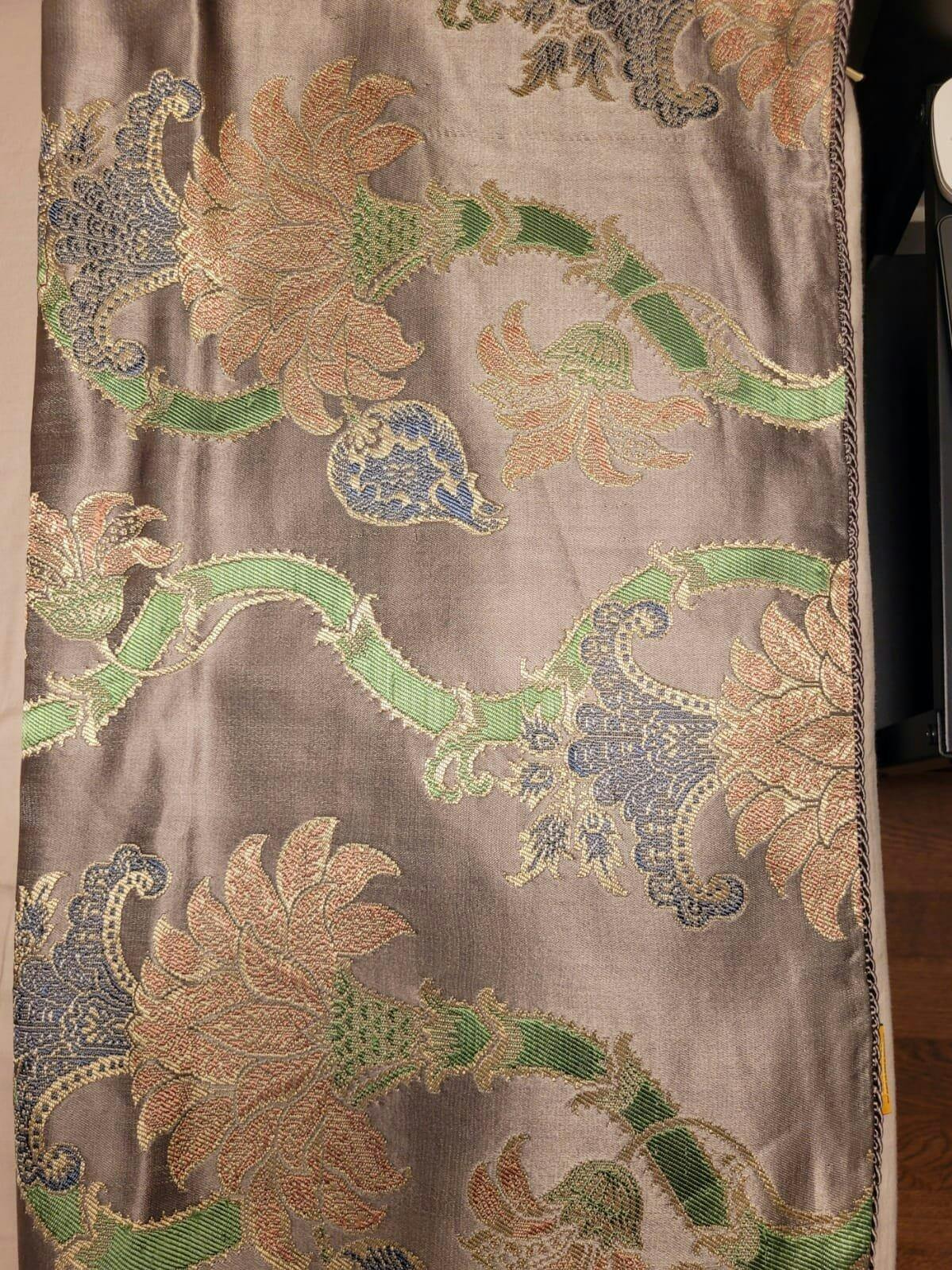 Dry clean only to preserve silk woven with metallic threads.